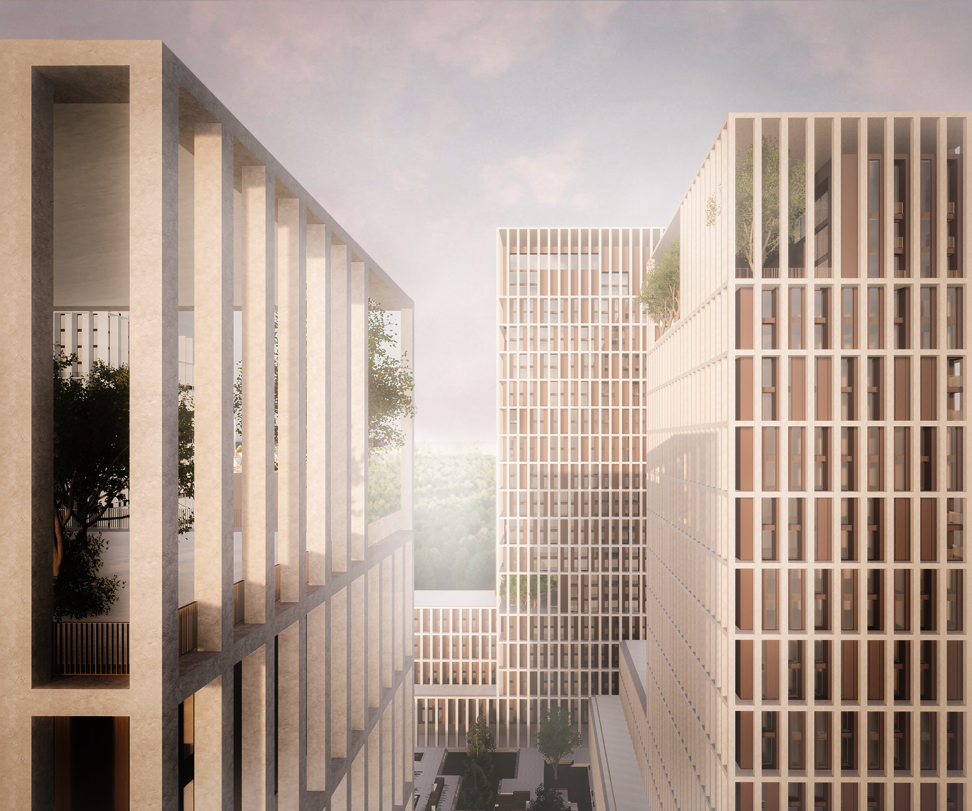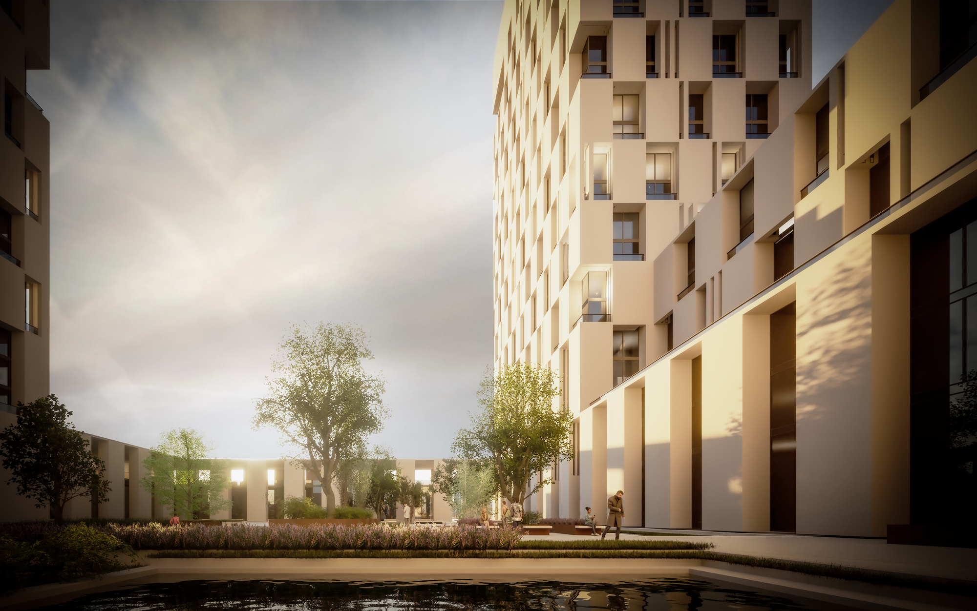 New build residential development comprising 820 apartments above retail units at ground floor. A total of 12no. towers each located on 4no. different podiums. Each podium and associated towers have a different language, yet following a masterplan DNA.