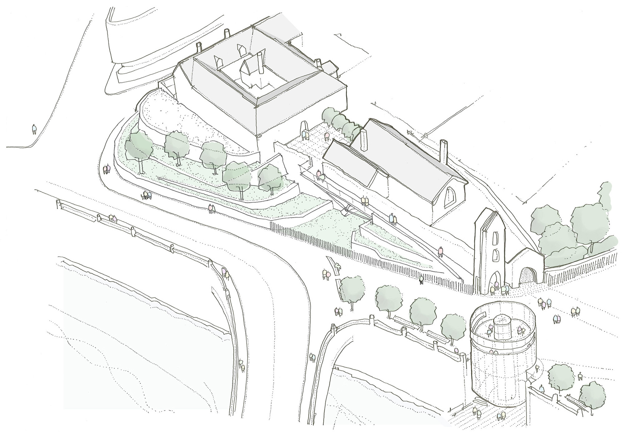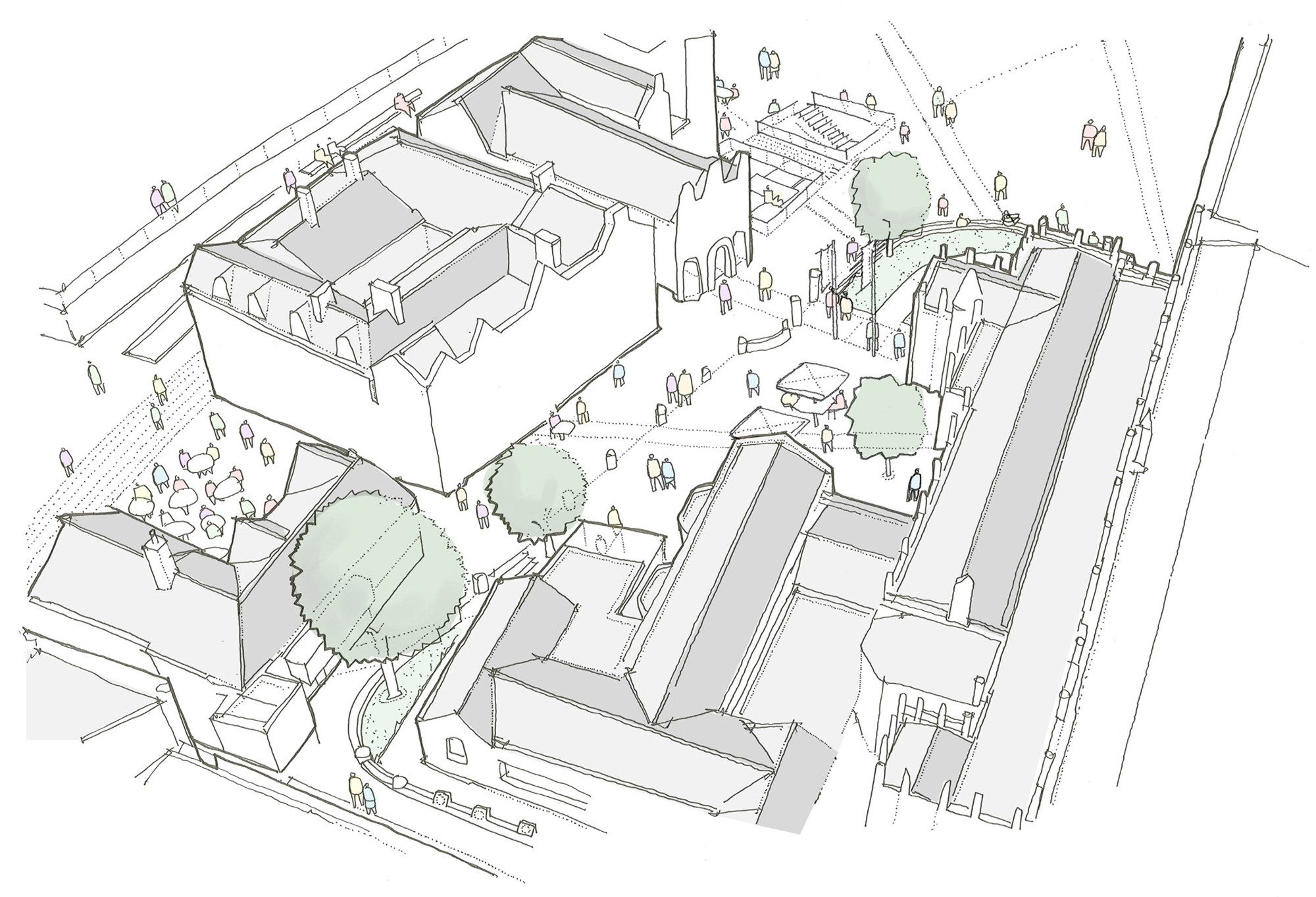 The concept seeks to work with the existing spaces introducing additions that revive and reinvigorate, while simultaneously encouraging them to link with new areas of public realm which together combine to form an interpretable whole revitalizing Manchester’s remaining medieval assets.